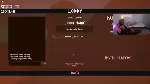 08:28:47Es wird über einen TikTok-Account diskutiert, der unerlaubt Clips hochlädt, was zu Verärgerung führt. Es wird überlegt, ob Skandal beim Spiel mitmachen kann, aber es gibt Bedenken, dass er es nicht rechtzeitig installieren kann. Es wird ein Spiel gehostet und versucht, die Einstellungen zu konfigurieren, was sich als schwierig erweist. Ein Zuschauer namens Ole wird gegrüßt, der mit einer Maske auftritt und über sein Doppelleben spricht. Es wird versucht, ein Spiel zu hosten, aber es gibt Probleme mit den Einstellungen. Schließlich gelingt es, ein Spiel zu erstellen, und Selina wird eingeladen, mitzuspielen. Es wird festgestellt, wie dumm man manchmal ist, und die Ungerechtigkeit der Welt wird beklagt. Der Code für das Spiel wird geteilt und es wird versucht, dem Spiel beizutreten. Es gibt Probleme mit doppelter Audioausgabe, die durch Stummschaltung auf Discord gelöst werden sollen. Es wird überlegt, ob man den Lobby-Code zeigen soll, und es wird festgestellt, dass Selina nicht ans Telefon geht. Es wird spekuliert, wer stattdessen mitspielen könnte.