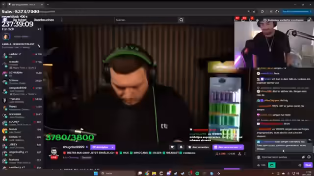 08:37:47Der Stream wird von einem persönlichen Streit zwischen dem Streamer und dem Zuschauer Skandal überschattet. Beide beleidigen sich gegenseitig und auch deren jeweilige Gefolgschaft wird in den Streit hineingezogen. Der Disput betrifft gegenseitige persönliche Angriffe und das Verhalten der Macher, was eine hitzige und ungemütliche Stimmung im Chat erzeugt.