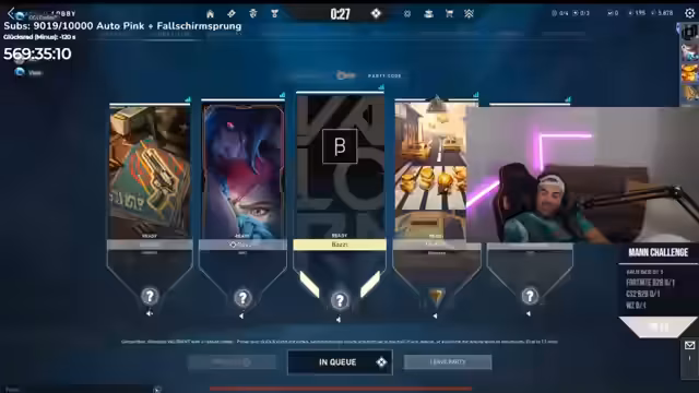 02:03:30Die Challenge beginnt mit dem Spiel Valorant. Um ein Team von vier Spielern zu bilden, werden verschiedene Personen eingeladen, darunter Adra, Ninska und Mandy. Die Einladung von Spielern führt zu Diskussionen über deren Identität und Eignung. Die Herausforderungen reichen von technischen Problemen wie Passwortvergessen bis zu organisatorischen Schwierigkeiten bei der Zusammenstellung eines funktionsfähigen Teams. Die anfängliche Vorfreude der Challenge steht im Kontrast zu den wachsenden logistischen und zwischenmenschlichen Schwierigkeiten bei der Durchführung.