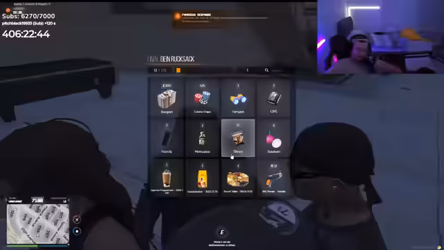 21:02:43Der Streamer plant, kurz auszugehen, während seine Tochter schläft, und spricht über bevorstehende Aktivitäten. Dabei werden Deals und Abmachungen mit der Community getroffen, insbesondere im Zusammenhang mit dem Submarathon. Es werden Strafen für verpasste Abmachungen besprochen, darunter das Rauchen von Vape, wofür sich der Streamer entschuldigt.