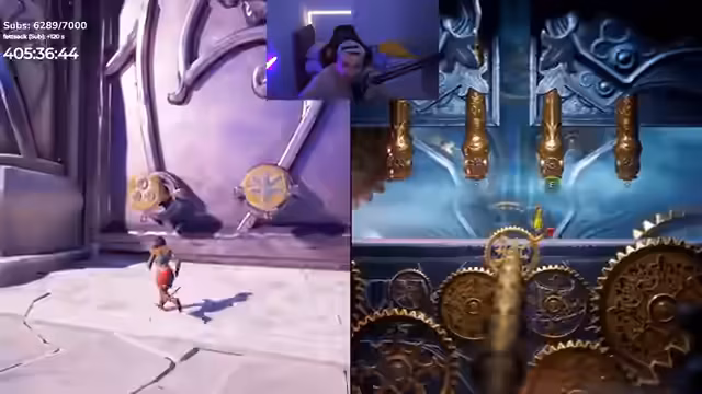 06:21:53Der Streamer versucht, mit einem Mitspieler zu kommunizieren, um gemeinsam voranzukommen. Die Herausforderungen erfordern präzise Bewegungen und zeitliches Zusammenwirken, was zu anhaltendem Stress führt. Die Kommunikation erfolgt teilweise unkoordiniert, was zu Missverständnissen und Todesfällen im Spiel führt. Der Fokus liegt darauf, die Hindernisse gemeinsam zu bewältigen.