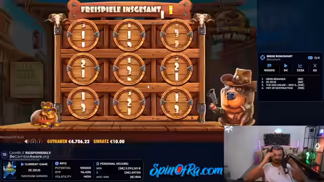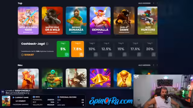 00:04:32Die Community schlägt verschiedene Spiele vor, darunter 'Le Cowboy' und 'Life and Dead'. Der Streamer entscheidet sich für 'Life and Dead', obwohl er es erst kürzlich gespielt hat. Er äußert Frustration über technische Probleme und die allgemeine Situation, die ihn ärgert. Die Suche nach Freispielen erweist sich als schwierig, und der Streamer ist besorgt, dass die Bonus-Hand schlecht verlaufen könnte. Nach mehreren erfolglosen Versuchen und hohen Verlusten wechselt er zu 'Big Buzz Boxing', das von einem Zuschauer vorgeschlagen wurde. Auch hier bleiben Freispiele aus, und der Streamer ist zunehmend frustriert über die verlorenen 1.000 Euro. Ein weiterer Spielvorschlag ist 'Bow of Artemis', bei dem der Streamer ebenfalls Schwierigkeiten hat, Freispiele zu erhalten.