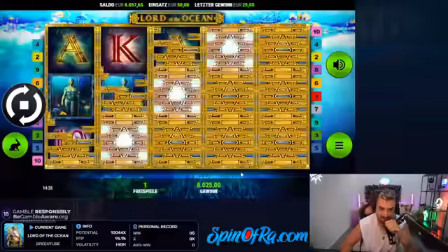 01:11:27Der Streamer kündigt eine massive Einzahlung von 5.000 Euro auf 50 Euro Einsatz in 'Lord of the Ocean' an und schwört, dass dies das letzte Mal in seinem Leben sein wird. Er ist emotional aufgeladen und äußert seine Frustration über seine finanzielle Situation, insbesondere im Hinblick auf Steuerschulden. Er fleht um Freispiele und ein Vollbild, um die Verluste auszugleichen. Überraschenderweise erhält er Freispiele in 'Lord of the Ocean'. Er ist hocherfreut und hofft auf einen großen Gewinn. Die Freispiele bringen einen Gewinn von 750 Euro, was er als 'geisteskrank' bezeichnet, da er solche Summen manchmal auch auf viel geringeren Einsätzen gewinnt. Er bleibt im Spiel, in der Hoffnung auf weitere Gewinne und eine Verlängerung der Freispiele. Am Ende hat er 8.000 Euro gewonnen, ist aber immer noch nicht zufrieden und überlegt, ob er 12.000 Euro auszahlen oder weiter spielen soll.