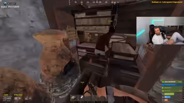 04:26:03Die Spieler treffen auf eine andere Person, Merle, und versuchen, auf dem Discord-Kontakt aufzunehmen, um eine Allianz oder Hilfe zu erbitten. Da der Spieler Merle nicht kennt, lehnt er dies ab. Kurz darauf wird einer der Spieler, Kalito, von einer schießenden Person getötet, die aus Merles Richtung zu kommen scheint. Dies führt zu der Annahme, Merle sei die Täterin und es kommt zu einer harten Konfrontation an ihrer Basis, bei der die Türen aufgebrochen und sie belagert wird.