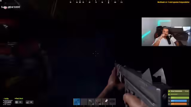 01:52:48Nach dem gescheiterten Angriff konzentrieren sich die Spieler auf den Aufbau besserer Ausrüstung und Waffen. Es wird eine Werkbank aufgesucht, um eine Thompson oder andere Waffen zu craften und Munition herzustellen. Die Diskussion dreht sich um die beste Waffenauswahl für Nahkampf und den Bedarf an Ressourcen wie hochwertigem Metall. Die Gruppe versucht, sich neu zu organisieren, während sie weiterhin Anzeichen von Gegnern in der Nähe wahrnehmen und eine neue Offensive planen.