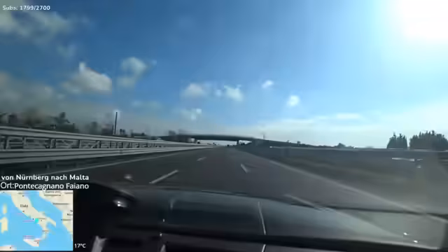 06:07:47Zum Ende der Reise ist der Streamer entspannt und blickt auf die bisherige Fahrt zurück. Sie befinden sich in Sizilien und haben es geschafft, die Fähre nicht zu verpassen. Sie sind auf dem Weg nach Malta und haben die erste Reise erfolgreich gemeistert. Die Situation wurde als herausfordernd, aber auch als sehr erlebnisreich beschrieben. Der Streamer erwähnt seine positiven Eindrücke von der Fahrt und der Landschaft während der Reise.