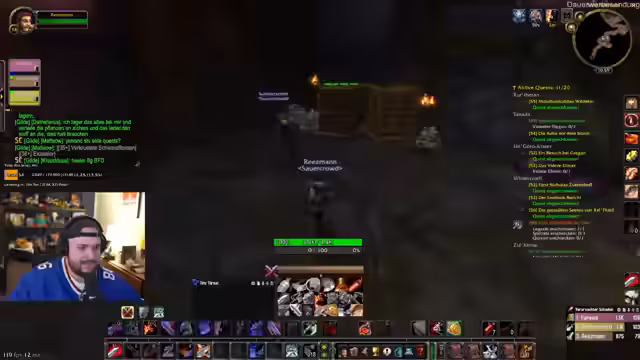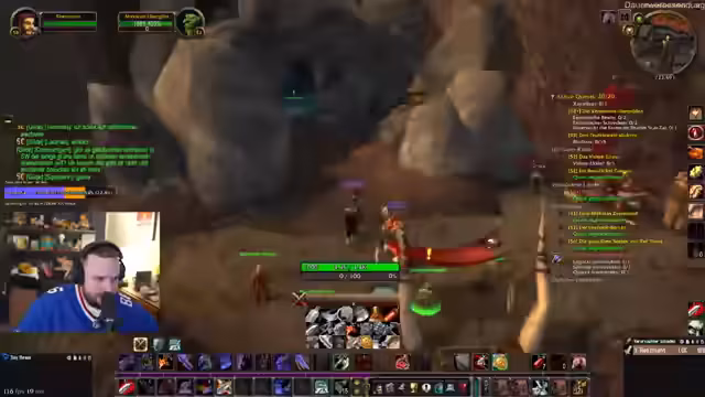 02:44:17Der Streamer widmet sich einer als äußerst nervig empfundenen Quest: 'Befreiung der Diener'. Diese erfordert, bestimmte Mobs zu einem Kristall zu ziehen, damit sie sich in eine Phase begeben, in der sie angeklickt werden können. Der Ablauf ist kompliziert, zeitkritisch und erfordert präzises Pullen, um nicht versehentlich zusätzliche Mobs auf sich zu ziehen. Der Erfolg der Quest wird als zufriedenstellend empfunden, da sie eine große Menge an XP bringt, auch wenn der Prozess anstrengend war und den Fokus auf dem Kampf gegen unerwartete Störungen, wie einen seltenen Mob, lag.