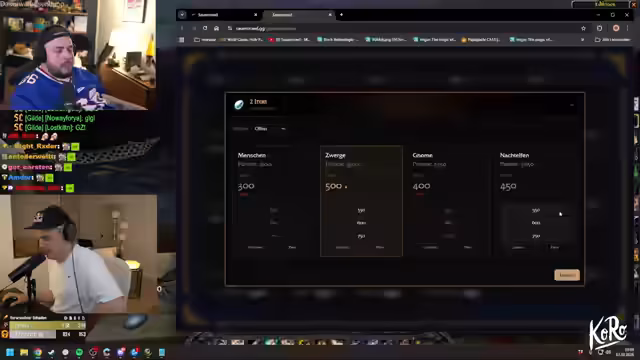 00:50:00Die Auktion wird zum Höhepunkt des Streams, bei der die Zuschauer um exklusive Items wie Dolche, Gold und Rüstungsteile bieten. Ein 'Hauptgewinn' wird versprochen, der im Umlauf bleibt. Der Chat ist aufgeregt, während Gebote wie 550, 600 und 750 Punkte für verschiedene Pakete abgegeben werden. Es kommt zu einer starken Range-Bait-Strategie, bei der die Völker versuchen, sich gegenseitig das Geld aus der Tasche zu ziehen. Die Auktion endet mit dem Verkauf eines Dolches an die Nachtelfen und einem spektakulären, aber letztlich wertlosen Lilienkranz an die Gnome.