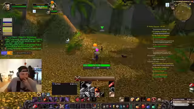 07:39:18Die Gruppe hilft einem Spieler, das fehlende Quest-Item 'Lebenswurz' für seine Krieger-Axt-Quest zu besorgen. Durch eine Anfrage im Chat findet sich schnell ein Helfer, der die benötigte Pflanze bereitstellt. Parallel dazu plant die Gruppe weitere Aktivitäten: ein gemeinsames Farmen im Arati-Hochland oder South Shore. Ein Spieler reflektiert über die intensiven Erlebnisse im Hardcore-Modus und die Lernkurve, während die Gruppe logistische Details wie Gruppeneinladungen und das Einholen von World Buffs (Stormwind, ZG) organisiert.
