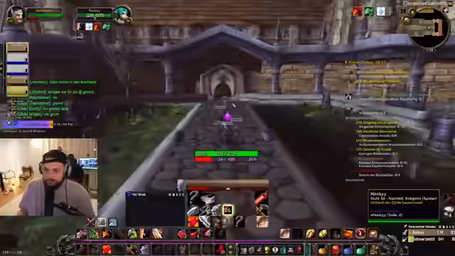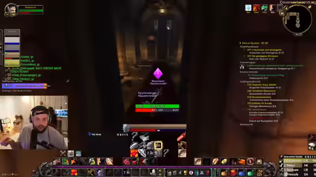 05:16:40Während des Dungeon-Laufs im 'Kloster' treten technische Herausforderungen auf: Layering-Probleme verhindern die Synchronisation der Gruppe, und ein Spieler (Wilbo) fehlt im Voice-Chat. Die Gruppe diskutiert die Route durch das Dungeon und die Schwierigkeiten der Bosse. Ein Spieler stirbt und muss wiederbelebt werden, während die Gruppe überlegt, ob sie den Dungeon heute beendet oder auf morgen verschiebt. Zeitmanagement und das Risiko des Scheiterns werden diskutiert.