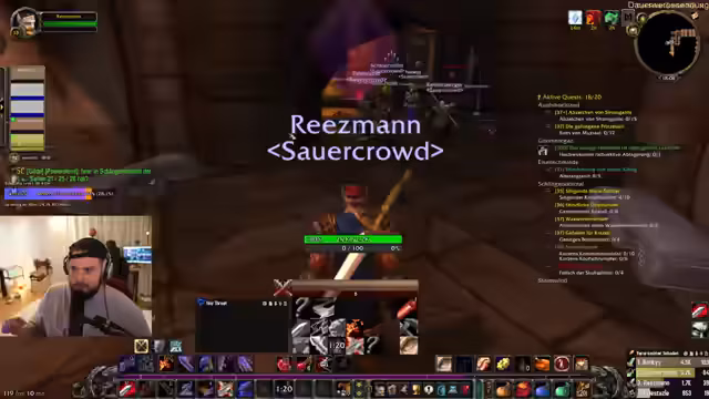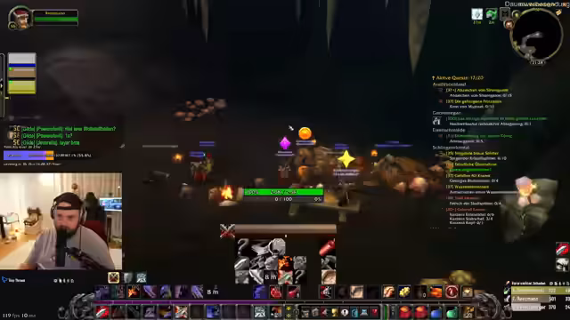 07:47:39Das Team koordiniert sich in South Shore, um Elementare zu farmen und Quests vorzubereiten. Sie planen, Feuerelementare an der Mauer abzufarmen, bis alle Spieler versammelt sind. Dabei diskutieren sie Strategien für den Umgang mit Elite-Mobs und tauschen sich über benötigte Gegenstände aus. Die Kommunikation zeigt enge Zusammenarbeit bei der Vorbereitung auf anspruchsvolle Dungeons.