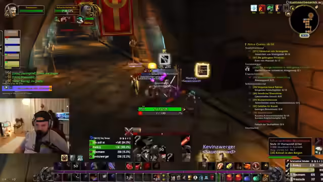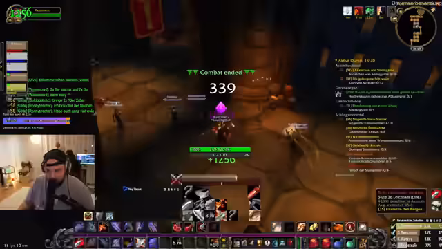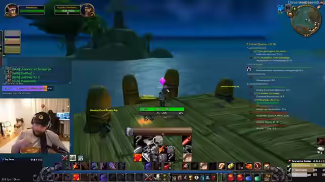 02:22:20Nach abgeschlossenen Quests und Level-Ups plant das Team die Weiterreise zum Kloster-Dungeon. Sie koordinieren die Nutzung von Heimsteinen für schnelle Reisen nach Booty Bay und diskutieren die genauen Farmorte für die benötigten Elementar-Essenzen. Gleichzeitig wird die Gruppenzusammenstellung mit Hanky und Dalu finalisiert und die Gefahr von Level-Unterschieden im Dungeon thematisiert, da höherstufige Gegner bei verpassten Angriffen zu Problemen führen könnten. Die Gruppe stimmt ab, den Dungeon trotz der Risiken heute durchzuführen.