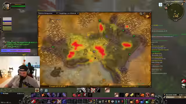 11:22:30Es wird überlegt, in den nächsten Tagen mit einem Avatar wie Stegi zu streamen, um eine Pause von mehreren Kamerawinkeln zu nehmen. Gleichzeitig wird die Lage in Ashenvale beschrieben, wo Nachtelfen zu Hause sind, aber Krieg mit der Horde herrscht, und die Gruppe plant, ins Steinkrallengebirge zu gehen, das als verwinkelt und gefährlich gilt. Wieland erwähnt, dass er sich in Ashenvale auskennt, warnt jedoch vor den Gefahren des Gebirges.