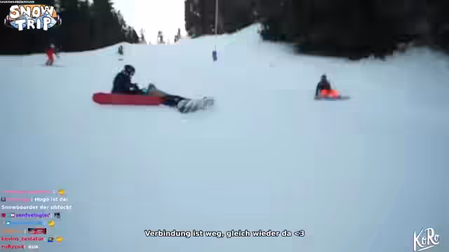 03:31:01Während der Fahrt kommt es zu chaotischen Szenen. Teilnehmer verlieren die Kontrolle, prallen gegen Objekte oder werden von anderen gerammt. Der Streamer selbst kollidiert mit Hugo, woraufhin sein Schlitten auseinanderbricht und er komplett im Schnee landet. Gleichzeitig geht die Verbindung zu Miguel, dem für den Stream entscheidenden Technikträger, verloren. Im weiteren Verlauf der Fahrt werden sowohl Hugo als auch Miguel getrennt von der Hauptgruppe abgedrängt, was zu einem teilweisen Zusammenbruch des Streams führt und eine erneute Koordination erfordert.