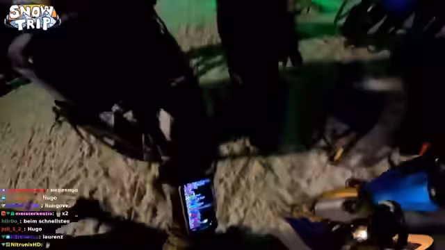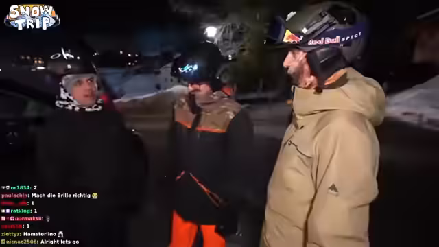 03:01:32Nach diversen technischen Schwierigkeiten und absurden Gesprächen, unter anderem über Aktien und UFO-ähnliche Lichteffekte, beginnen die Teilnehmer endlich mit dem Nachtrudeln. Eine der Rodelbahnen entpuppt sich als extrem steil und gefährlich, was die Teilnehmer dazu veranlasst, vorsichtig zu bleiben. Miguel, der das Haupt-Internet-Setup in einem großen Rucksack trägt, muss dabei stets in der Nähe des Streamers bleiben, um eine stabile Verbindung für den Live-Stream zu gewährleisten. Die ersten Abfahrten verlaufen holprig und voller Aktion.