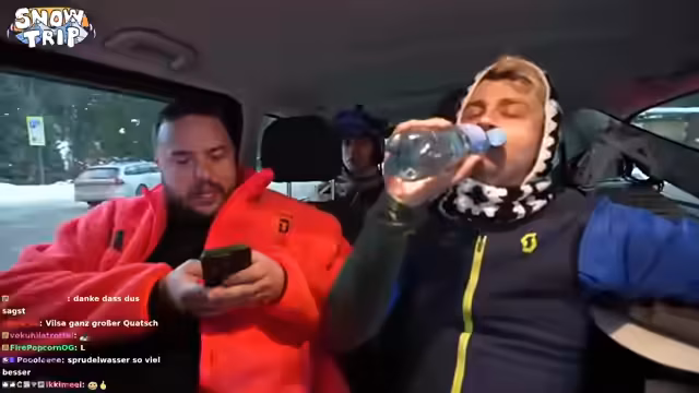 00:00:02Der Stream beginnt mit Ankünften und ersten Eindrücken vom Trip. Ein Teilnehmer erwähnt, wie fit Dominik aussieht, als käme er vom Ballett, während ein anderer nach einem Heli-Flrag fragt. Die Anreise war anscheinend anstrengend, da die Gruppe den ganzen Tag gefahren ist, kaum stehen blieb und insgesamt 16,4 Kilometer zurücklegte. Ein kurzer technischer Check wird erwähnt, da die Internetverbindung im Heli für das Streamen nicht ausreichte. Der Plan für den Abend ist zunächst unklar, doch es gibt die Option in einer Pizzeria zu essen.