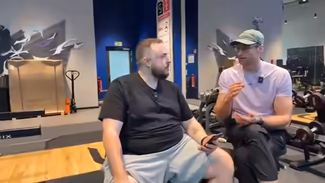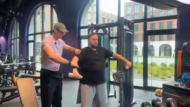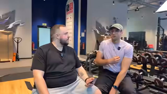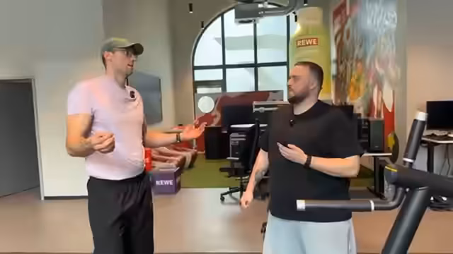 00:37:36Nach dem Brusttraining wechselt das Duo zur Rückenmuskulatur. Streamer Alex erklärt das Prinzip der Bewegungsmuster und warum Übungen wie Rudern und Latzug im Kern dieselbe Zielmuskulatur trainieren. Es folgt eine ausführliche Diskussion über Abnehmen und Ernährung. Streamer Alex teilt seine persönliche Erfahrung mit dem Verlust von 30 Kilogramm in drei Monaten durch tägliches Cardio, Disziplin und eine angepasste Ernährung, einschließlich eines morgens konsumierten Proteinshakes, um die Kalorienbilanz positiv zu beeinflussen.