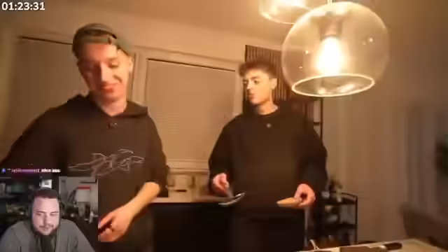 01:20:03Zum Ende des Streams springt der Streamer zu einem völlig neuen Thema: einem Vergleich von zwei Messern. Er stellt fest, dass er und ein anderer Nutzer dasselbe Modell besitzen und fragt, ob es sich um ein "Schwaben-Ding" handelt. Er erzählt von seiner persönlichen Erfahrung mit den teuren Messern von Kai Shun und gibt praktische Tipps zur Pflege. Die Unterhaltung ist locker und anarchisch und endet abrupt, als er mit einem unverständlichen Satz über eine Spülmaschine abbricht.