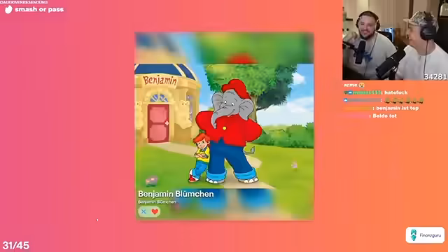 00:51:56Das angekündigte gemeinsame Format 'Smash or Pass' beginnt. Es wird auf einer Webseite im Stil von Tinder durchgeführt. Die Bewertung beginnt mit relativ normalen Persönlichkeiten wie Lara Croft und Charakteren aus League of Legends wie Miss Fortune. Schnell werden die Kandiden zunehmend ungewöhnlicher und surreal, bis schließlich auch Videospiel-Charaktere wie Lola Bunny aus 'Space Jam' und Pokémon wie Lopany bewertet werden. Die Bewertung der fiktiven Wesen wird dabei mit humorvollen und teilweise provokanten Kommentaren begleitet, wobei die Grenzen zwischen Fantasie und Realität verschwimmen.