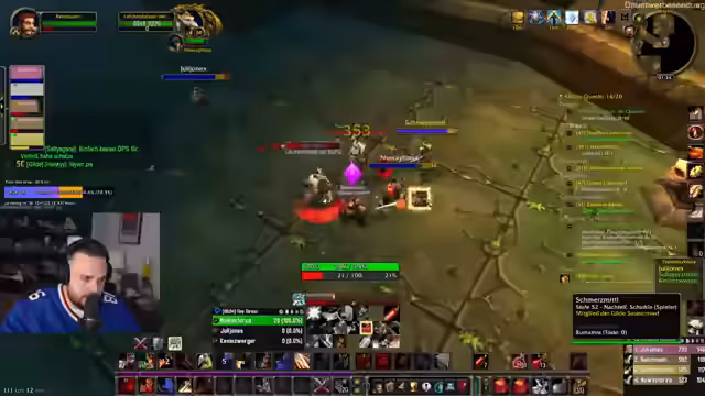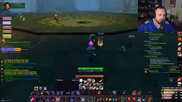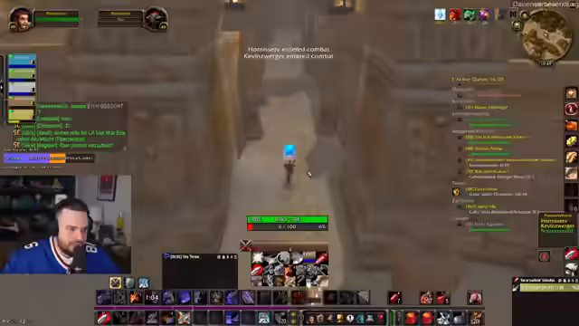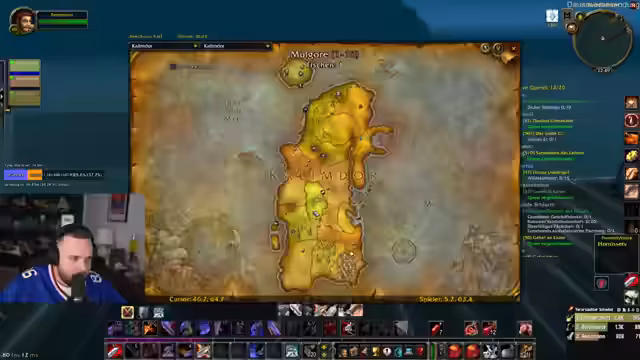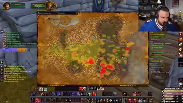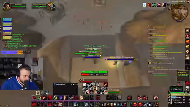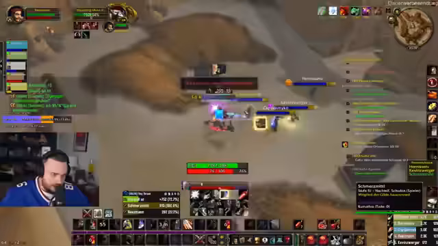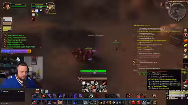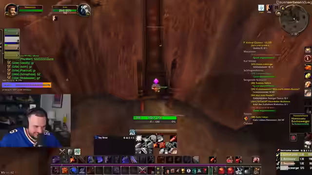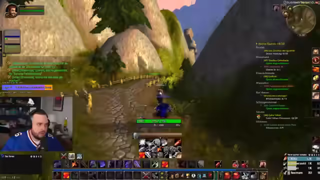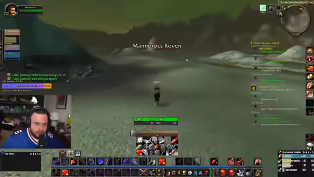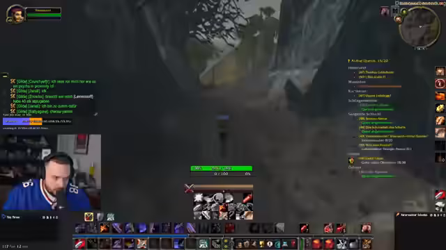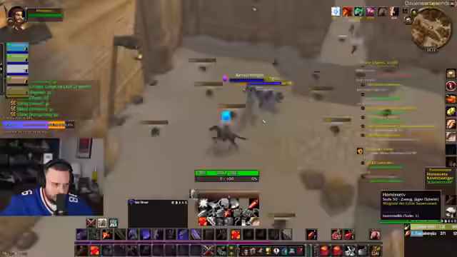10:22:40In der öden Wüste von Tanaris muss der Streamer sich durch gefährliches Terrain mit vielen Monstern durchschlagen. Er ist ängstlich, weil er Angst vor unvorhergesehenen Adds hat, die ihn töten könnten. Trotz der Gefahr arbeitet er sich langsam aber sicher vor. Parallel plant er einen Dungeon-Einsatz in Maraudon. Es gibt jedoch Probleme mit der Gruppenzusammensetzung, da ein potenzieller Tank in einem League of Legends-Spiel feststeckt. Der Start des Dungeons hängt davon ab, wie dieses Spiel ausgeht.