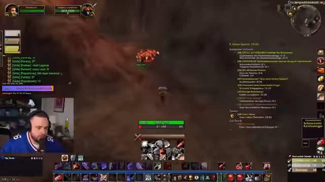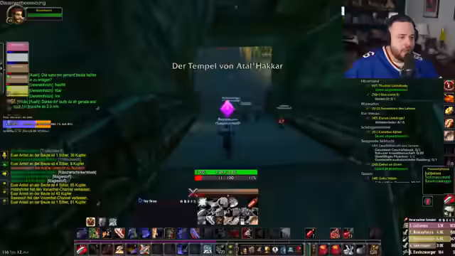 10:46:26Es wird der Plan geschmiedet, die letzten Bosse von Maraudon und danach den Tempel von Atal'Hakar zu besuchen. Allerdings sorgt ein zufälliger Blick in den Kalender für eine unerwartete Panik: Morgen früh steht eine Aufnahme für den 'Edeltalk' an, für die niemand mental oder zeitlich vorbereitet ist, was eine komplette Katastrophe für den normalen Lebensrhythmus darstellt.