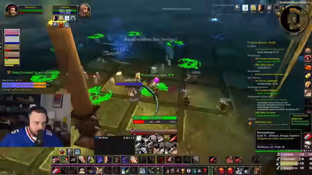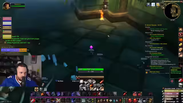 03:50:13Nach dem Abschluss einer Quest wird ein weiterer Quest-Auftrag angenommen, was den Questlog füllt. Der Streamer reagiert auf Kommentare und es kommt zu einer kleinen technischen Diskussion über das Verschwinden eines Emotes. Während der Jagd nach bestimmten Mobs wie dem Zuchtmeister, werden Drops wie Magiestoff gesammelt und die Effektivität des aktuellen Level-gebiets bewertet. Das Gameplay bleibt konzentriert, aber locker.