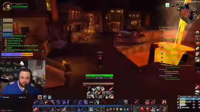 11:35:40Das Team bereitet sich auf den Tempel vor, wobei der Treffpunkt in den Dämmerwald, genauer gesagt nach Sturmwind, festgelegt wurde. Es besteht Konsens, dass der benötigte Ring für alle Gruppenmitglieder einzigartig ist, daher muss er von jedem einzeln farmen werden. Bei der Wahl des besten Startpunkts für die Reise diskutieren die Spieler zwischen Ratchet und Terramore, wobei Ratchet als die schnellere Option bewertet wird, um im Dungeon zu landen. Parallel dazu gibt es Pläne, den Dungeon am nächsten Tag erneut zu besuchen, da mehrere Spieler noch abgeschlossene Quests im Inneren haben.