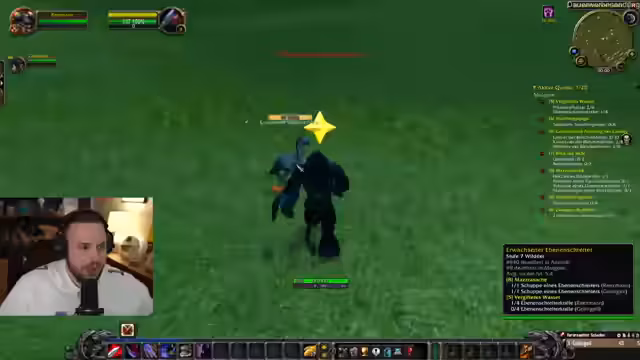 01:32:42Die Spieler beginnen, Eben-Schreiter zu töten, um die Quest zu erfüllen. Die Mechanik des Wutaufbaus und der Einsatz von Fähigkeiten werden weiter geübt. Es kommt zu Diskussionen über die Loot-Verteilung in der Gruppe, da der Vater das Gefühl hat, benachteiligt zu werden. Nach erfolgreichem Kampf werden neue Gegenstände wie Umhang und Handschuhe gefunden und angelegt. Graue und weiße Gegenstände können in der Regel verkauft werden, aber am Anfang sind sie eine Verbesserung. Das Charakterfenster (C-Taste) wird genutzt, um Ausrüstung anzulegen und zu vergleichen. Eine weitere Quest wird angenommen, die das Sammeln von Wasser in speziellen Kannen beinhaltet. Der Streamer betont, dass man nicht alles lesen muss, da die Add-ons die Quest-Ziele auf der Karte anzeigen. Ein Spieler stirbt auf Level 9, was die Bedeutung des Überlebens in Hardcore-WoW unterstreicht. Es wird eine Regel aufgestellt, dass Spieler, die vor Level 10 sterben, vom Event ausgeschlossen werden.