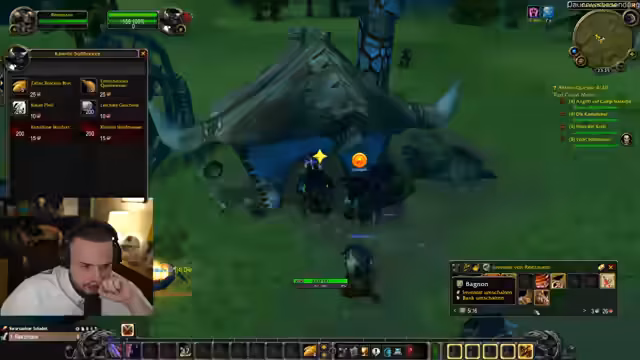 02:46:44Ein Raid von Donnie trifft ein, und der Streamer begrüßt die neuen Zuschauer, indem er erklärt, dass er zum ersten Mal WoW spielt und bereits Level 6 erreicht hat. Er bedankt sich bei Donnie für den Raid und fordert die Zuschauer auf, es sich gemütlich zu machen. Anschließend widmen sie sich der Suche nach dem Lehrer für neue Fähigkeiten. Die Navigation gestaltet sich schwierig, da der Lehrer nicht klar auf der Karte markiert ist. Nach einigen Irrungen und Wirrungen finden sie den Kriegerlehrer Krang Stonehoof. Der Streamer lernt neue Fähigkeiten wie Parieren, Sturmangriff, Verwunden und Donnerknall, stellt jedoch fest, dass er nicht genug Geld hat, um alle zu kaufen. Dies führt zu einer Diskussion über die Bedeutung des Goldsammelns und die Notwendigkeit, Gegenstände zu verkaufen.