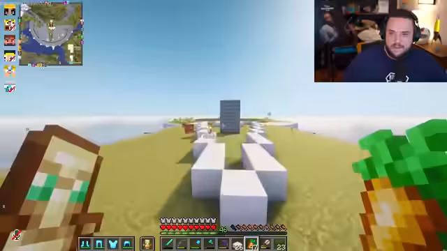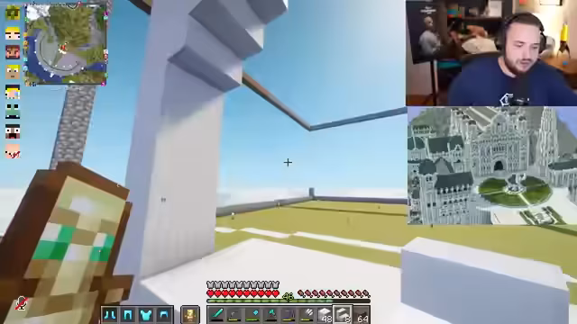 00:52:53Der Streamer äußert Frustration über den Designprozess in Minecraft, besonders wenn es um neue Elemente geht, nicht nur Nachbauten. Er erwähnt die Notwendigkeit, für zukünftige Bauprojekte professionelle Hilfe von Community-Bauleuten in Anspruch zu nehmen. Das Team baut den oberen Bereich von Minas Tirith und muss Platz für eine riesige Kapelle schaffen. Es gibt technische Probleme wie den Mangel an Materialien und das Fehlen bestimmter Blöcke wie normales Quarz, was den Bauprozess behindert.