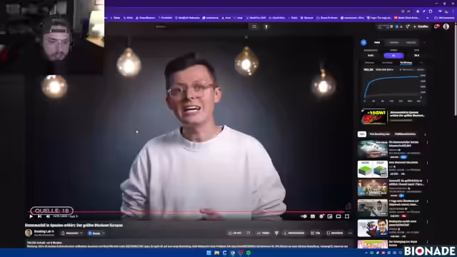 01:01:19Der Streamer geht dem Großblackout in Spanien nach. Es gab massive Spannungsschwankungen, die zu einer Trennung des spanischen und französischen Netzes führten. Die genaue Ursache, warum die Stromquellen vor den Umspannwerken vom Netz getrennt wurden, ist noch unklar. Während einige einen Hackerangriff vermuten, diskutiert der Streamer eine Theorie des Autors Marc Elsberg, der den Vorfall als Marketing für sein Buch über Stromausfälle nutzt.