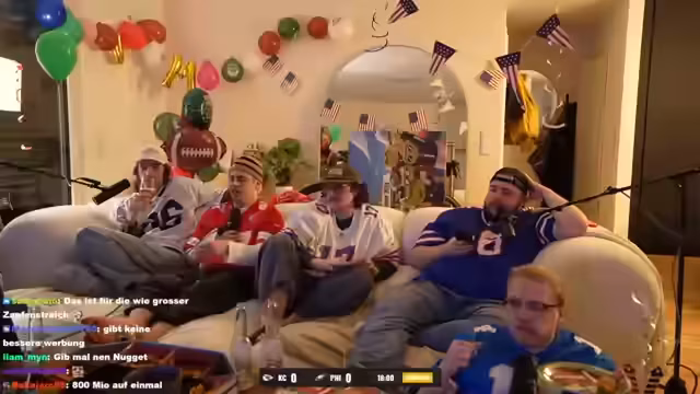 08:20:57Es wurden scherzhafte Anspielungen auf Drogenkonsum gemacht, wobei spekuliert wurde, wer welche Substanzen konsumiert haben könnte. Anschließend entwickelte sich eine bizarre Diskussion über die Vorstellung, Füße in verschiedenen Körperöffnungen zu haben. Nach dieser skurrilen Abschweifung wurde festgestellt, dass das vierte Quarter des Super Bowls begonnen hat. Es wurde kommentiert, dass die Drogen wohl sehr stark sein müssen. Die Mayo wurde als Zutat erwähnt. Henke wurde dafür kritisiert, Nuggets ohne Soße zu essen, was zu einer hitzigen Diskussion führte. Es wurden Vergleiche zu einem viralen Video eines Opas gezogen, der sich über Urin vor seiner Haustür beschwert. Henke verteidigte seine Vorliebe für Essen ohne Soße und brachte seine Frustration darüber zum Ausdruck, dies ständig erklären zu müssen.