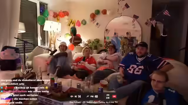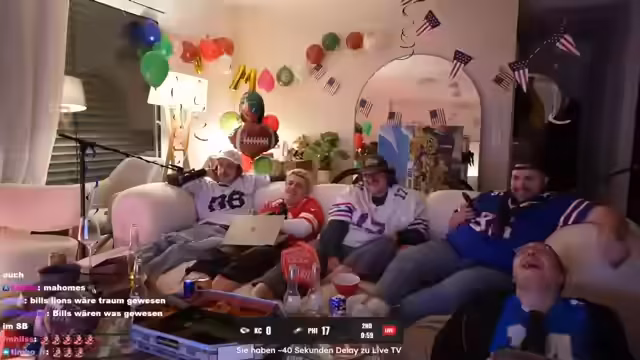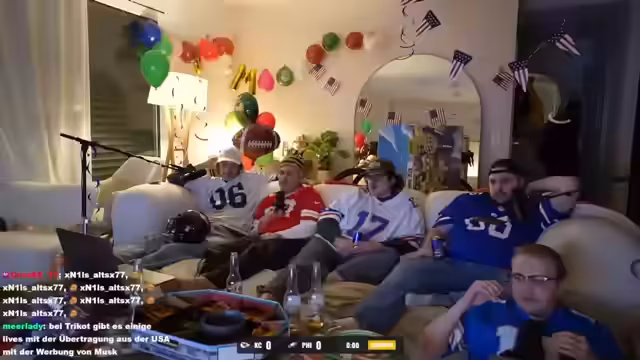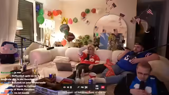 Reeze's Super Bowl Watchparty bot ein breites Spektrum an Unterhaltung. Von Lampen-Befestigungs-Aktionen über die Fertigstellung eines Snackstadions bis hin zu kulinarischen Experimenten mit Hotdogs und Chili. Technische Schwierigkeiten, Dschungelcamp-Diskussionen und Teampräferenzen rundeten den Abend ab, bevor das eigentliche Spiel in den Fokus rückte.