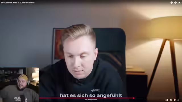 01:50:45Es wird über die ungemütliche Couch gesprochen, die nicht zum Liegen oder gemütlichen Anlehnen geeignet ist. Danach geht der Streamer auf den Konsum von Ketamin ein und beschreibt die verschiedenen Einnahmemethoden. Er wählt für sich eine mittlere Dosis und äußert seine Vorfreude auf die bevorstehenden Effekte, nachdem er das Ketonin konsumiert hat.