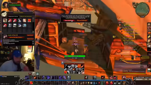 09:43:54Nach den anstrengenden Dungeon-Läufen gibt der Streamer seine Quests ab und plant, mit den gesammelten Buffs den nächsten Tag zu beginnen. Es werden zentrale Talente für einen Krieger im Tank-Role diskutiert, wie 'Schlachtruf', 'Demoschrei' und 'Überwältigen', um eine fundierte Entscheidung zu treffen. Der Streamer zeigt Interesse in Makros zu investieren, um seine Bedieneffizienz zu verbessern, wie ein Makro, das ihn sofort in die Verteidigungshaltung versetzt und 'Spott' aktiviert.