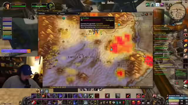 04:15:00Das Team plant, den World Buff in Sturmwind zu holen, um den Gruppenfortschritt zu optimieren. Dabei treten massive technische Probleme auf: Flugmeister sind nicht ansprechbar, Greifen können nicht landen, und der Server ist überlastet, was zu Laggs und Fehlern führt. Sie diskutieren Alternativen, wie das Nutzen von Portalen oder das Warten am Flugpunkt. Ein Spieler wird währenddessen für ein anderes Vergehen bestraft (Unterwasseratmung). Die Gruppe ringt um Geduld, während der Buff-Timer abläuft und die Situation immer chaotischer wird.