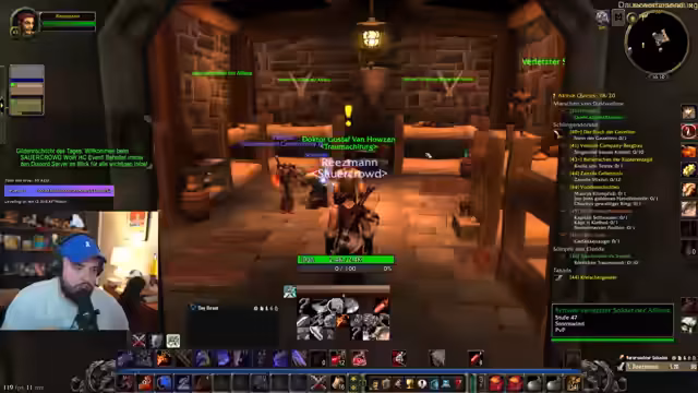 00:20:15Nach den einleitenden Gesprächen wechselt der Fokus komplett zu World of Warcraft. Der Streamer loggt sich in das Spiel ein, um gemeinsam mit seiner Community und potenziellen Gruppenmitgliedern wie Wieland und Glinde weiter zu leveln. Zunächst inspiziert er die SourCrowd-Webseite, checkt den letzten Todesfall und analysiert den Spielstil eines anderen Spielers, der durch einen Fehler ertrunken ist.