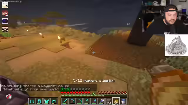 12:51:34Die Streamer diskutieren die Notwendigkeit einer Cobblestone-Farm für die kommenden Tage, da die aktuelle Bauphase viele Ressourcen verbraucht. Es wird erwähnt, dass niemand im Moment die Nerven hat, eine Farm zu bauen, was auf die lange Streaming-Dauer und Ermüdung hindeutet. Ein technisches Problem mit einem eingebrannten Bildschirm wird angesprochen, und es werden humorvolle Lösungsvorschläge aus dem Chat aufgegriffen. Die Diskussion dreht sich auch um die Ausleuchtung der Basis, um Spawns von Mobs zu verhindern, und die Beschaffung von Holz für Fackeln. Es wird klar, dass die Materialbeschaffung eine zentrale Rolle für die Fortsetzung des Projekts spielt.