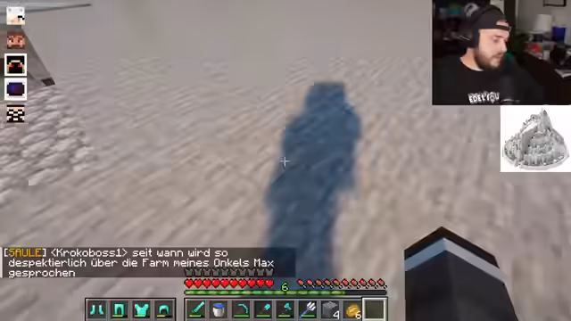 06:42:04Der Streamer hat ein großes Problem: Sein Trident ist weg, nachdem der Server gecrasht ist. Er ist unsicher, ob er ihn gedroppt hat oder ob er durch den Crash verloren ging. Zuschauer helfen bei der Analyse des Clips, um zu klären, was passiert ist. Es wird vermutet, dass der Trident von einem ertrunkenen Zombie aufgenommen wurde oder durch den Lag despawned ist. Die Serverprobleme halten an, was das Bauen und Kämpfen gefährlich macht. Der Streamer ist frustriert über die Situation, da ein Verlust seiner Ausrüstung alles bedeuten würde. Es wird über mögliche Lösungen und die Wiederbeschaffung des Tridents diskutiert.