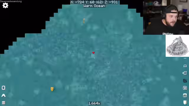 07:35:29Der Streamer begibt sich erneut auf die Suche nach Geoden, um Calcit zu farmen. Er betont, dass er diesmal nicht getrödelt hat und bereits zwei Geoden ausgehöhlt hat. Kevin wird für seinen Fleiß gelobt, da er direkt mit dem Bau der Mauer begonnen hat. Es wird ein Trick von Isa erwähnt, um Geoden leichter zu finden: Shader ausschalten, Fullbright aktivieren und die Kamera so positionieren, dass die Hälfte des Bildschirms unter Wasser ist. Der Streamer schlägt einen Wettkampf vor: Wer zuerst eine Geode findet, erhält fünf Sub-Gifts vom anderen. Dies wird als freundliche Wette unter Freunden angesehen, die das Spielgeschehen belebt. Er findet eine Geode, wird jedoch von einem Ocean Monument und dessen Mining Fatigue-Effekt behindert, was ihn dazu zwingt, Milch zu holen, um den Effekt aufzuheben.
