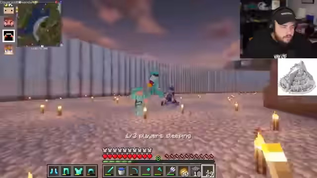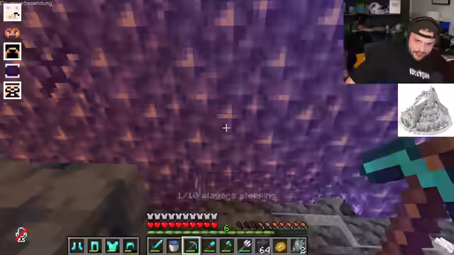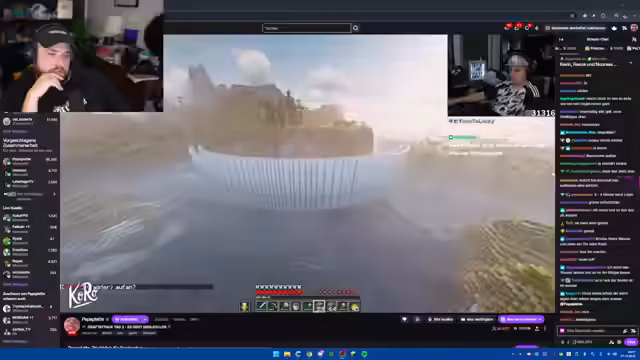 02:00:44Es wird die Idee einer Pferdefarm diskutiert, auf der Pferde gezüchtet und auf Geschwindigkeit getestet werden können, um darauf zu wetten. Der Streamer plant, eine Pferderennbahn zu bauen. Währenddessen treten technische Probleme mit Twitch auf, da der Streamer ausgeloggt wird. Die Gruppe kämpft weiterhin gegen Mobs in einer Trial Chamber und sammelt Keys. Es wird erwähnt, dass Hugo erneut gebannt wurde, was für Verwirrung sorgt. Die Streamer arbeiten an der Korrektur eines Fehlers in einer Mauer und diskutieren über die Effizienz verschiedener Windburst-Verzauberungen für PvP.