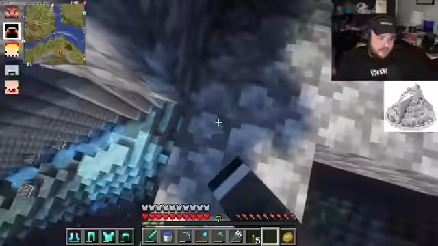 04:24:20Eine Geode wird erfolgreich gefunden und abgebaut. Es stellt sich heraus, dass die Geoden größer sind als zunächst angenommen und Basalt sowie Calcit enthalten. Der Spieler macht sich daran, das Calcit abzubauen, während ein Delfin in die Höhle schwimmt. Es wird diskutiert, dass es in Steinbergen auch Calcitstränge gibt, die einfacher abzubauen sein könnten, aber die Spieler bleiben vorerst bei der Ozean-Methode. Ein Spieler sammelt mehrere Stacks Calcit und plant, einen Teil davon für ein Totenkopf-Bauwerk zu behalten. Die Spieler stellen fest, dass ihr Trident schnell verschleißt und überlegen, wie sie es reparieren können. Nach einer erfolgreichen Ernte beschließen sie, zur Basis zurückzukehren, um das gesammelte Calcit abzuliefern und mit dem Bau der Mauer fortzufahren. Sie freuen sich über die Nähe ihrer Basen, da dies spontane Aktionen und den Austausch von Ressourcen erleichtert.
