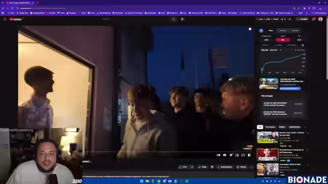 03:45:55Der Streamer reagierte auf ein Blind-Dating-Video, bei dem drei Männer auf Basis ihres Schlafzimmers bewertet werden. Kommentiert wurden u.a. WG-typische Einrichtungsgegenstände, "Oma-Holz" und "John Deere"-Deko. Währenddessen stiegen die Abonnements rasant an. Nachdem der Streamer mehrere Male auf Thumbnails von "Poppy Studio" hereingefallen war, wurde die Strategie der Thumbnail-Änderungen und deren Einfluss auf die Performance von Videos diskutiert.