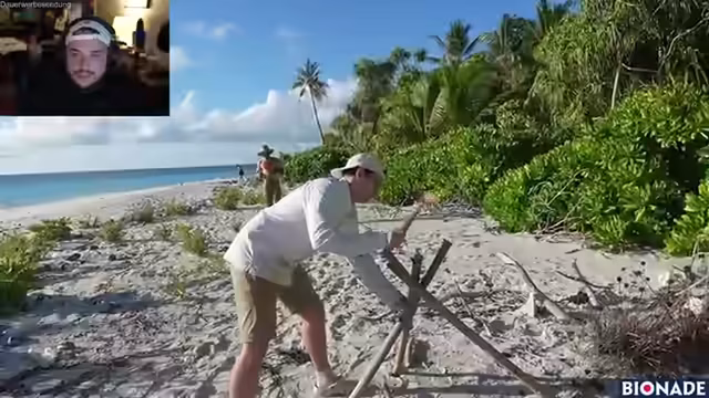 02:17:52Ein neuer Tag begann und Heiko fühlte sich besser, obwohl sein Magen noch immer gereizt war. Es wurde erwähnt, dass die anderen Teilnehmer die Schokoriegel am fünften Tag erwarten würden. Es wurde über die Strapazen der Challenge gesprochen, wie Schlafmangel, schlechte Gerüche, fehlende Waschmöglichkeiten und Dehydration. Um Kim aufzuheitern, wurden Kokosnüsse gesucht. Es gab Probleme mit dem Wasser, da die Trinkflasche mit Prüfelfett verschmutzt war. Ein neuer Schlafplatz am Strand wurde geplant und Stöcke dafür gesammelt. Es wurde eine Angel gebaut, um Fische zu fangen. Der aktuelle Lagerplatz war zu warm, daher sollte ein neuer Chill-Spot eingerichtet werden. Der Streamer hat das Video von Sascha bei den Giants gesehen. Es wurde ein neues Shelter gebaut, aber es war immer noch zu warm. Es wurde versucht, Fische zu fangen, aber ohne Erfolg. Der Hunger wurde immer größer und es wurde überlegt, die versteckten Schokoriegel zu essen.
