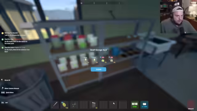 07:14:31Der Streamer leert die Taschen eines Passanten und findet Viagra. Es wird überlegt, ob ein Autopacker angeschafft werden soll, um den Verpackungsprozess zu automatisieren. Der Streamer verkauft Weed an Peggy und stellt fest, dass sie süchtig danach wird. Er investiert in Automatisierung, ist sich aber unsicher, ob sich der Autopacker lohnt. Der Streamer läuft in die falsche Crip. Er kauft viele Samen und trifft sich mit einem Kollegen. Der Streamer überlegt, ob ein neues Skateboard mehr Geschwindigkeit bringt. Er verkauft Weed an einen Obdachlosen. Der Streamer stellt fest, dass er kein Soil mehr hat. Er erklärt, wie die neuen Bewässerungssysteme funktionieren und dass sie nicht 200 Dollar pro Ding besser sind. Der Streamer will Warehouse besuchen und neue Seeds holen. Er packt neue Pflanzen rein und will ins Warehouse. Der Streamer kauft das gute Toil. Er baut die automatische Packing-Station auf und bewässert die Pflanzen automatisch. Der Streamer erhält eine SMS für 115 Heu und will es heute Nacht fertig bekommen. Er hat alles automatisiert und will sich das Warehouse ansehen. Der Streamer macht eine kleine Aufräumung und überlegt, ob es ein Upgrade-Item für den Müll gibt.