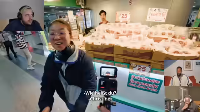 01:52:15Das Team erreicht Bangkok, nachdem sie von einer Dame, die sie mitnahm, direkt zum Bahnhof gebracht wurden. Sie organisieren die restliche Weiterfahrt und treffen letztendlich im Zielort ein. Nach Abschluss der Ereignisse von Folge 6 beginnt der Streamer, sich gemeinsam mit den Co-Streamern Esso und JP auf die Reaktion zu Folge 7 vorzubereiten. Technische Hürden bei der Einrichtung des gemeinsamen Discord-Calls werden überwunden.