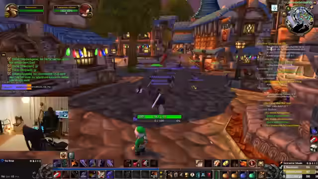 01:06:43In Sturmwind angekommen, werden Ausrüstungsgegenstände geprüft und verkauft. Der Streamer ist sich unsicher über den Nutzen seiner Gegenstände und sucht Rat aus dem Chat, um die bestmögliche Ausrüstung zu wählen. Die Zeit in der Stadt wird genutzt, um auf den bevorstehenden Buff zu warten und die nächsten Schritte zu planen.