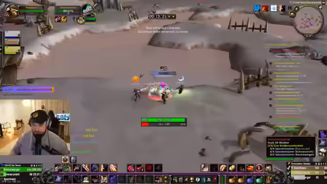 00:21:08Nach Ankunft in Ashenvale wird die 'Licht von Elune'-Quest in Angriff genommen. Der Streamer fühlt sich unwohl und hat das Gefühl, im Vergleich zur Gruppe weniger zu wissen, was zu Frustration führt. Trotzdem beginnt der Kampf gegen die Elementare, um eine spezielle Questbelohnung zu erhalten, die eine Art 'Überlebens-Item' darstellt, das in Notsituationen schützt.
