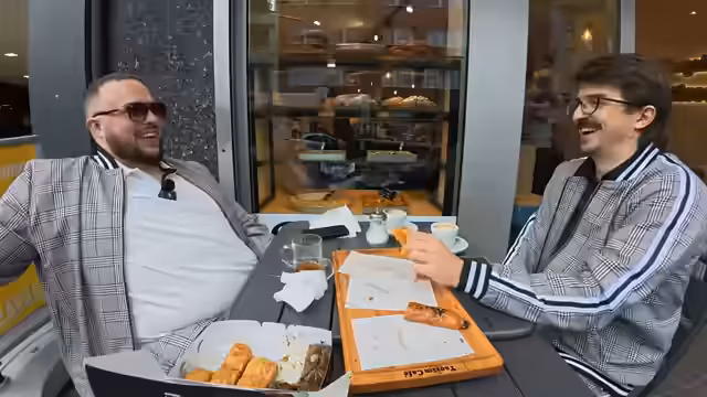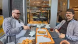 03:15:56Nach Ankunft an der Location, die als eine Art Pressekonferenz beschrieben wird, geht es direkt zum Einkauf von Energie in Form von Baklava. Es wird eine große Menge für etwa 20 Personen geplant. Die Diskussion konzentriert sich darauf, wie viel Baklava notwendig ist, was als riesige Portion für den gesamten Abend angesehen wird. Es wird auch über vegetarische Optionen gesprochen und der Laden gelobt.