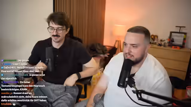 00:14:41Es wird über Gewichtsabnahme gesprochen und ein persönlicher Erfolg beim Anpassen einer Jacke geteilt. Offenbarung über einen Arztbesuch und die Diagnose von Testosteronmangel, was zur Verschreibung einer Testosteroncreme führt. Diskussionen über den Zusammenhang zwischen Übergewicht und Hormonhaushalt bei Männern und Frauen. Es wird über die Einnahme von Hormonen gesprochen. Es wird über die korrekte Anwendung der verschriebenen Testosteroncreme gesprochen. Es wird überlegt, die Anwendung live im Stream zu zeigen, aber verworfen. Es wird über die Kings League gesprochen und das es besser als andere Ligen ist. Es wird über die Teamdynamik und die Rivalitäten gesprochen.